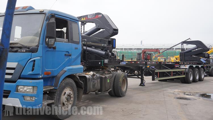 37 tons lifting capacity, tested up to 45 tons. According to the type of transportation container, it is divided into 20ft and 40ft container side lifter. According to different transport chassis, it can be divided into self-loader trucks and container side loading trailers. It is mainly used to load containers, and can also be used to load container tanks, equipment, wood, etc.