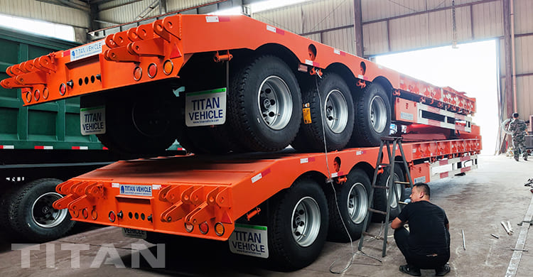 The Congo customer ordered two units 60 ton 3 axle semi low loader trailers this time. The Congo customer is the first time to buy a semi-trailer in TITAN. In the early stage, in order to gain the trust of the customer, Abby, the sales manager, made a lot of efforts. The customer's main demand is to transport heavy equipment, the sales manager sent a lot of pictures and videos of the TITAN low loader trailer to the Congo customer, including testing, operation, and feedback from other customers. In this way, it gradually gained the trust of customer.