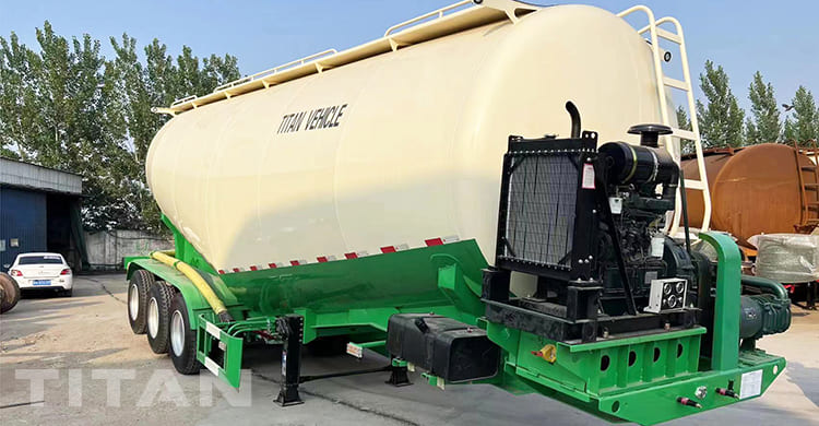 The shipping medium is powder material, generally composed of tank body, safety accessories, sales road, power system (optional), and traveling mechanism, which can realize positive pressure pneumatic conveying semi-trailer.