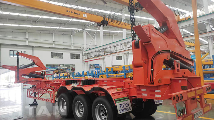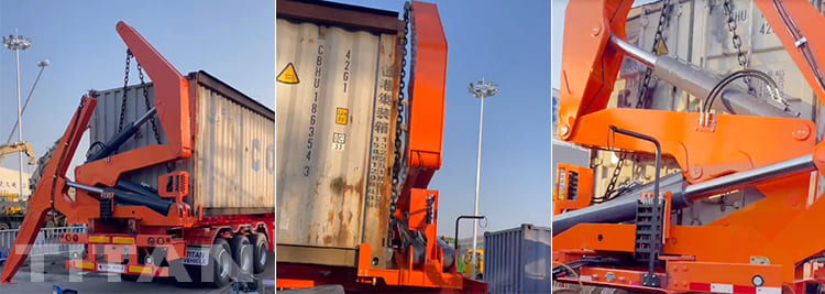 Note that such side loading trailer lifting equipment can be installed not only on semi-trailers. It is also applicable directly to the chassis of a truck for handling 20ft containers or tank containers. Hydraulic cranes can be mounted on the chassis of a truck with an 6x4 or 8x4 wheel.